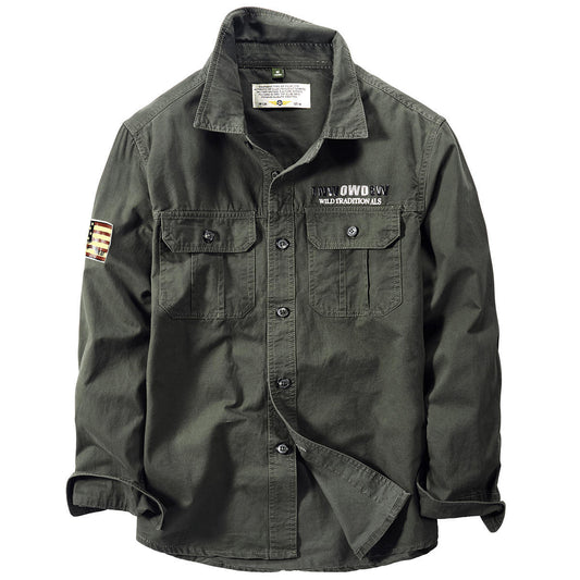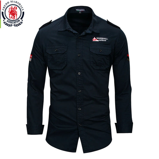 Fredd Marshall 100% Cotton Military style Long Sleeve Casual Cargo Shirts With Embroidery