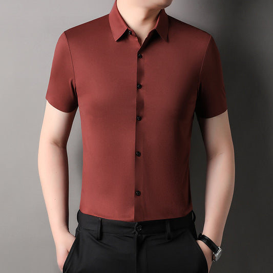 Men's Fashion Seamless Non-ironing Solid Color Anti-wrinkle Tencel Shirt