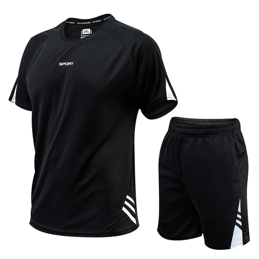 Summer Sets Men's T-shirt + Shorts Suit Brand Short Sleeve Set Printed Cotton Tshirts Jogging Sweatpants Male Sport Suit