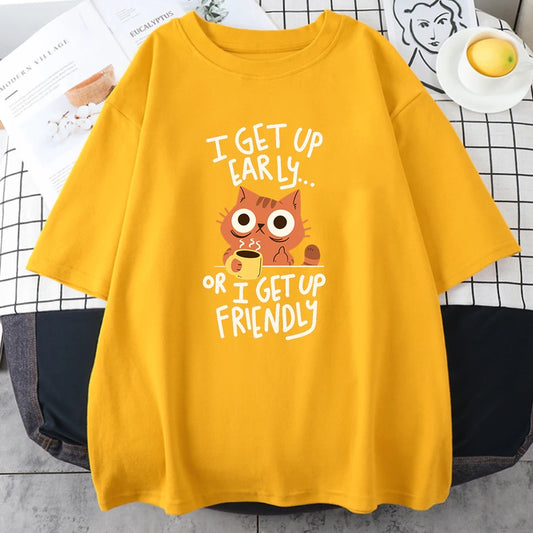 Urban Feline Vibes: Oversized Cotton Tee with Coffee Cat Print