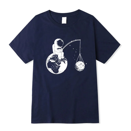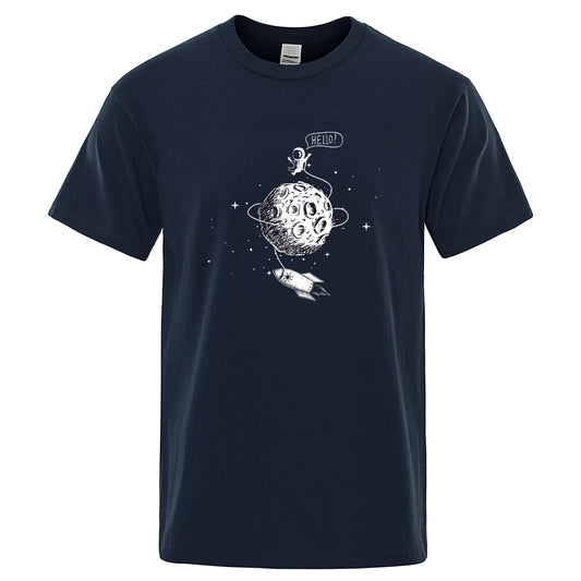 100% Cotton Men's High-Quality T-Shirt: Loose Fit with Astronaut Print for a Cool, Casual Look